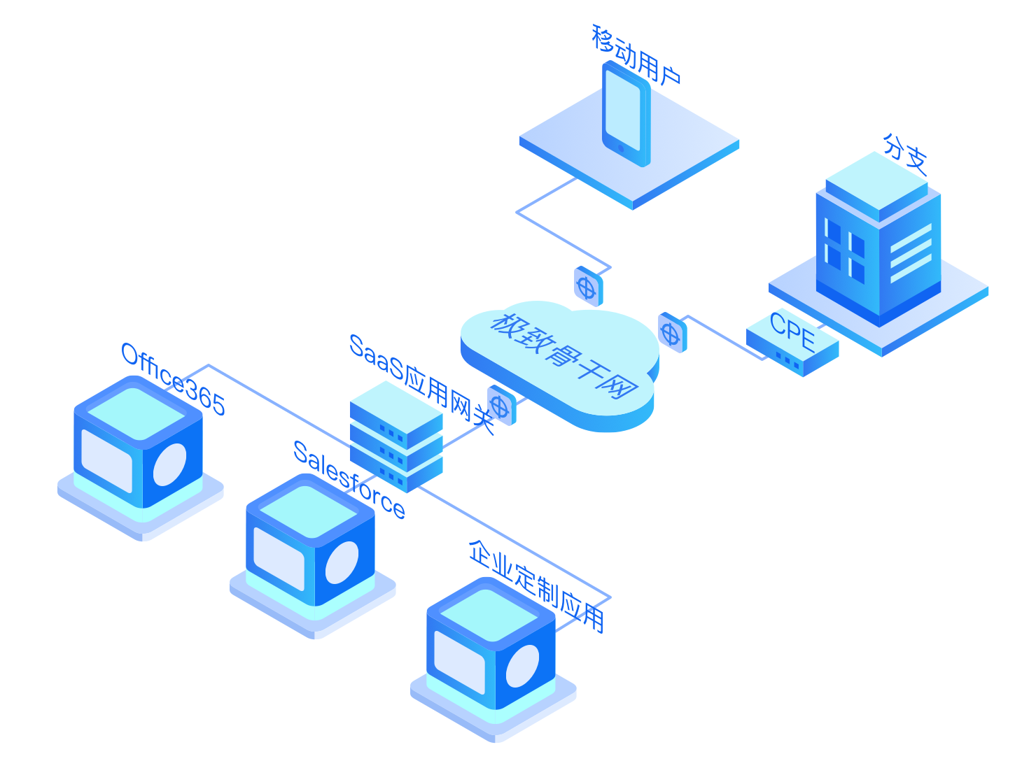 针对企业跨国的应用如Office 365, Oracle, Salesforce, Workday访问进行定向加速,改善访问体验,提升工作效率